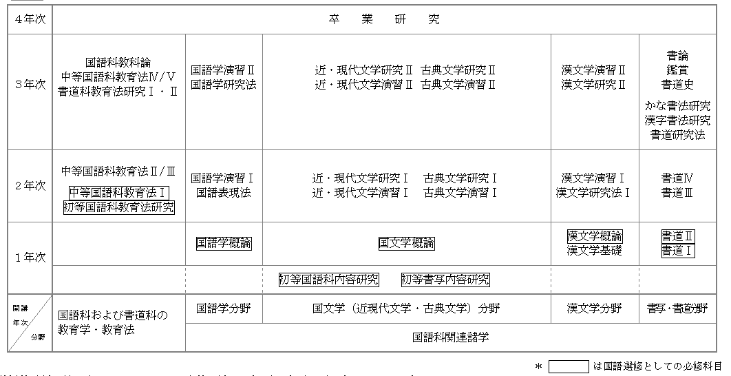国語選修における専門科目のカリキュラム